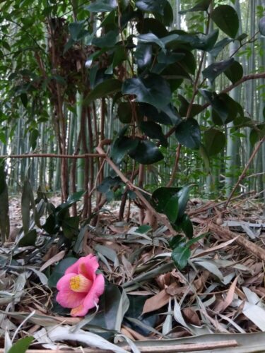 竹林の椿が咲く季節にRさんは毎年整理伐をする整理伐とは枯竹や風倒竹の片付け仕事のこと(無益伐採)この季節の整理伐は気持ち良く一日中竹を伐ってもなぜかほとんど疲れないきっと秋の主伐(有益伐採)で酷使した筋肉がほどよく回復していることと何より季節がいい暑くもなく寒くもなく蚊もいない最も軽い装備で仕事ができる季節である秋の勝負の主伐期に「きれいな椿…」なんてよじ登って撮影などはもちろんできない