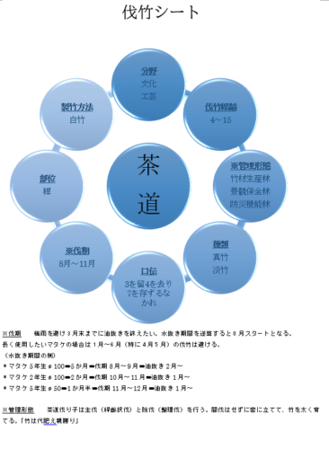昭和30年(1955年)頃からの高度経済成長期昭和40年頃からのマタケ大開花期代用品普及による竹需要の減少そして安価品の海外からの輸入「伐り子(切子)ー伐竹業者ー製竹業者ー製造会社ー問屋ー小売り店」は日本全国各分野の壁を開きネットワークを強固に築きながら激しい時代の荒波を乗り越えて今ここに至っている「京都には竹産業に関わる多くの人たちがいるにもかかわらず、なぜ西山の竹林は荒廃しているのか」といった...