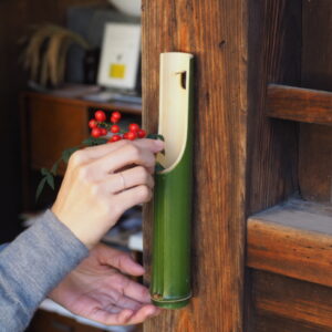 新年の設えにふさわしい、切り出したばかりの青竹を用いたお箸や一輪挿を期間限定で承ります。