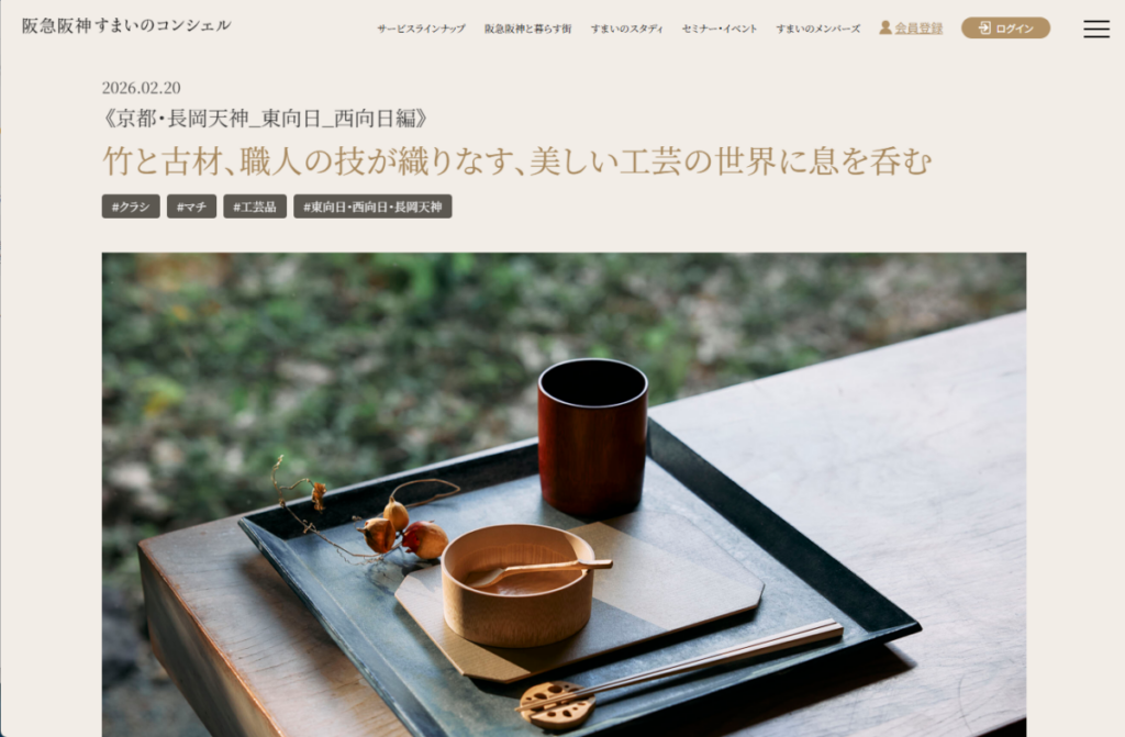 阪急阪神すまいのコンシェルWEBサイトの京都・長岡天神エリアの街めぐり特集にて、高野竹工の直営店「Shop & Gallery 竹生園」をご紹介いただきました。