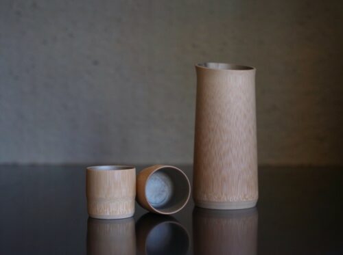 職人が育て寝かした竹から肉厚で真っ直ぐなものを厳選し、轆轤で挽いて、薄くて軽やかな徳利とお猪口に仕上げました。